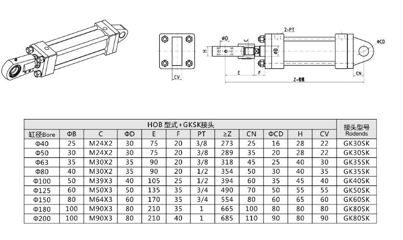 標準HOB+CA型 單耳型+GKSK關節(jié)耳環(huán)接頭外形安裝尺寸圖