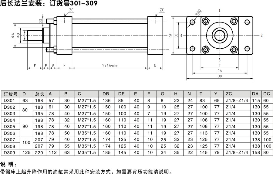 后法蘭安裝升降油缸