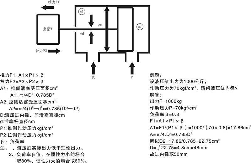 3)缸內(nèi)徑和活塞桿直徑的單位為毫米mm。
