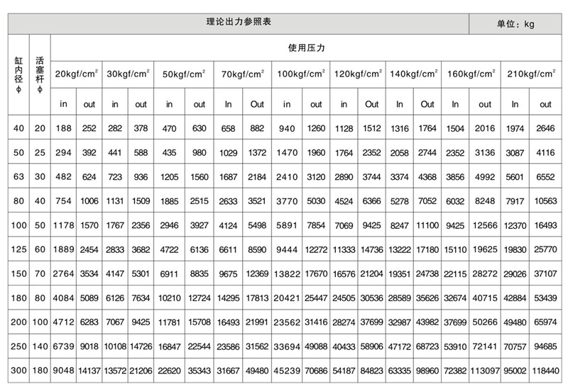 壓力缸徑受力對(duì)照表