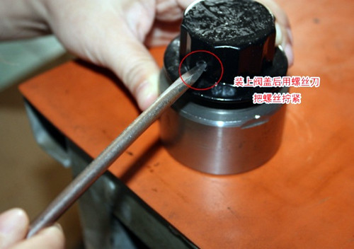 c.裝上閥蓋后,用螺絲刀把螺絲擰緊。
