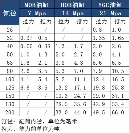 MOB拉桿油缸有定位臺階,HOB與YGC/YGD油缸無定位臺階。拉桿油缸選型建議