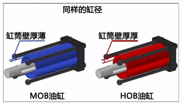 MOB油缸與HOB油缸相比:因承載壓力不同,在相同缸徑條件下,HOB油缸壁厚相對MOB油缸較厚。 2.導向套▼