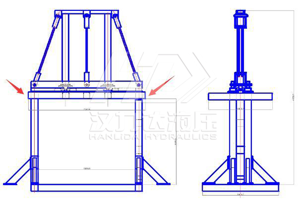 本臺液壓站控制兩只油缸HROB125*80*1500-21Mpa,同時運動。具有保壓功能,運動速度1分鐘1000毫米。